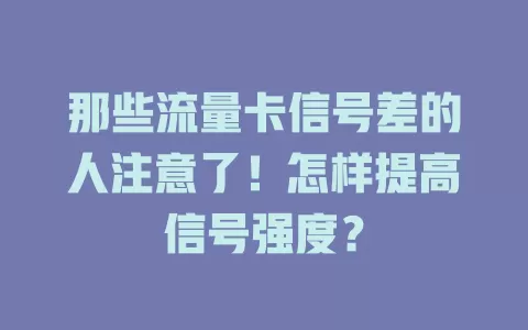 流量卡信号差真的太让人头疼啦!刷个视频卡半天,消息发出去半天没反应,急死人。别慌,咱来看看怎么提高流量卡信号强度。