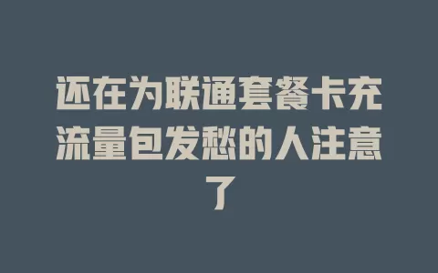 流量不够用,真的太让人头疼啦!尤其是用联通套餐卡的时候,要是流量包没充好,那可就麻烦大了。别着急,今天就来给大家好好讲讲联通套餐卡怎么充流量包。