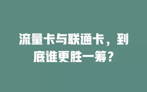 所以,到底选择流量卡还是联通卡,要根据个人的具体使用需求来判断。如果你更看重流量的灵活性和费用,那么流量卡可能更适合你;要是你对网络的稳定性和速度有较高要求,联通卡或许是更好的选择。