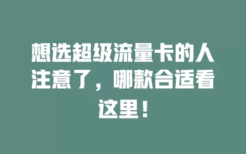 选超级流量卡不能盲目,得综合考虑很多因素。如果选得不合适,不仅用起来不舒心,还会浪费不少钱。你得知道不同流量卡的特点和适用人群,这样才能选到真正适合自己的。就像你买衣服,得根据自己的身材、喜好和场合来选,流量卡也是一样的道理。