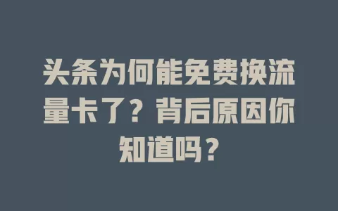 你有没有发现,现在在头条上能免费换流量卡了?这事儿挺新奇的,咱就来唠唠为啥会这样。
