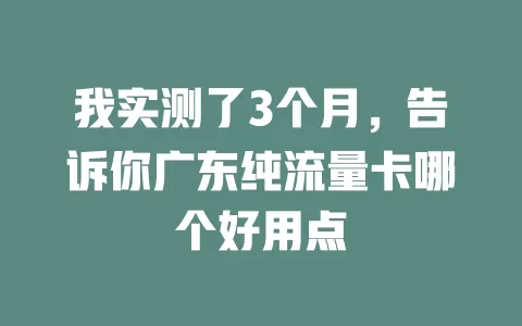 如果你也想在广东选一张好用的纯流量卡,我给你几点 别只看宣传,一定要多看看用户评价,可以去一些论坛、社交媒体上了解一下大家的使用感受。 尽量选择正规运营商的卡,这样售后有保障。 根据自己的流量需求来选卡,如果你平时流量用得少,就没必要选流量多但价格高的卡。