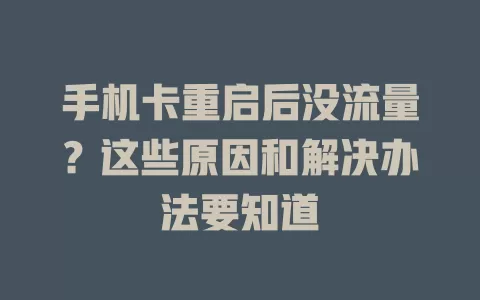 手机卡重启后没流量了,这可太让人头疼了!别急,咱来好好分析分析原因,再找找解决办法。