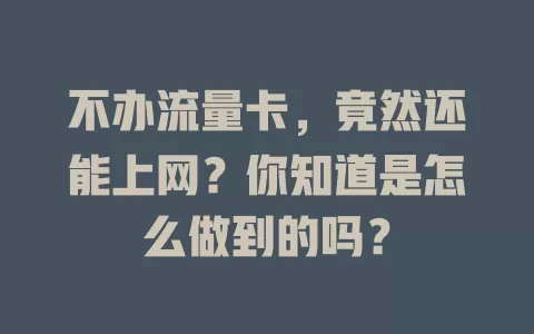 你有没有想过,不办流量卡也能上网?这听起来是不是有点不可思议?今天咱就来好好聊聊这事儿。