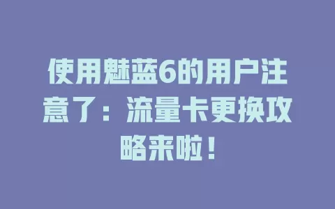你是不是用魅蓝6手机的时候,觉得当前的流量卡套餐不够划算,或者流量不够用,想换一张新的流量卡?别着急,我这就把更换流量卡的攻略分享给你。