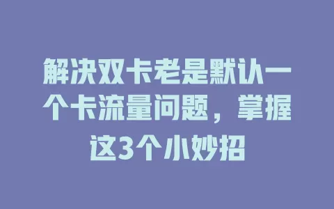 你有没有遇到过这种情况,手机用的是双卡,可老是默认一个卡的流量,想用另一张卡的流量还得手动切换,麻烦得很。有时候一不注意,就用了不想用的那张卡的流量,导致费用增加,真让人头疼。今天我就给你分享3个小妙招,这可是我和身边朋友实操过的,亲测有效,能帮你解决双卡老是默认一个卡流量的问题。