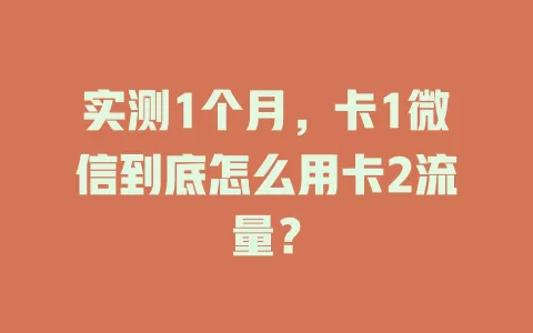 你是不是也有这样的痛点:卡1的流量不够用,可卡2却还有不少流量闲置着,微信聊天、刷朋友圈、看公众号文章都得小心翼翼地用卡1那点可怜的流量,生怕超了费用。其实,让卡1微信使用卡2流量是个很好的解决方案。我自己就有过这样的经历,之前一张卡流量快用完了,另一张卡还有好多,可微信只能用正在使用流量的那张卡,特别不方便。后来经过一个月的实测,我找到了一些方法。